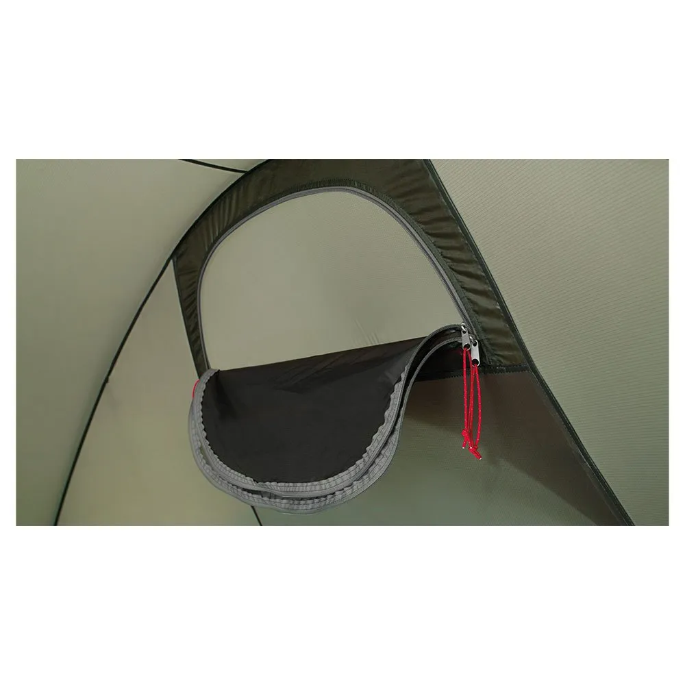 Easy pitching is aided by large pole sleeves and long pegging loops with extra guylines and snow skirts providing additional security.